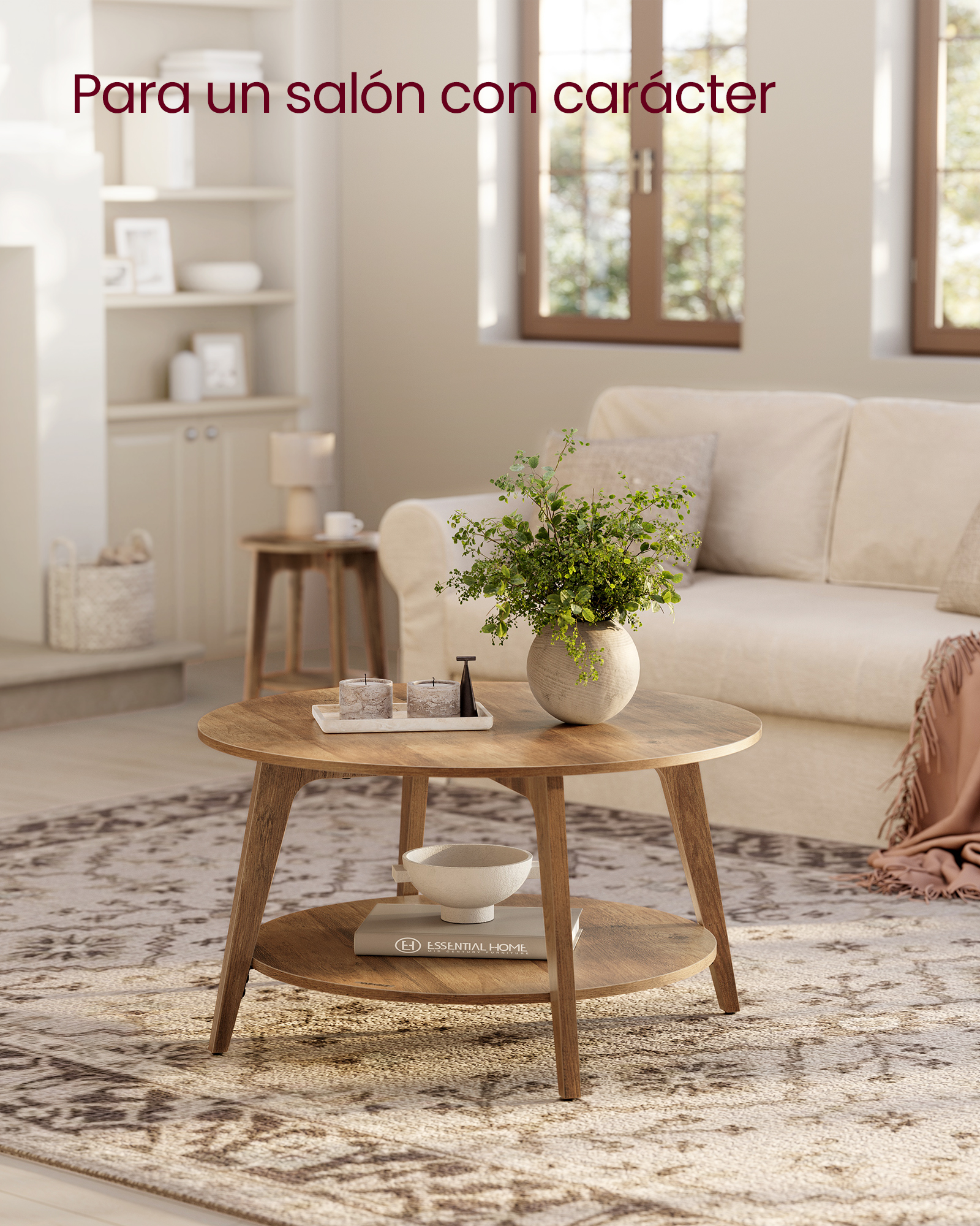 Renueva tu sala de estar con esta mesa de café redonda de 2 niveles. Con un diseño minimalista y natural, esta mesa no solo es visualmente atractiva, sino también práctica y resistente. Ideal para organizar libros, decorar o disfrutar un café con estilo.
