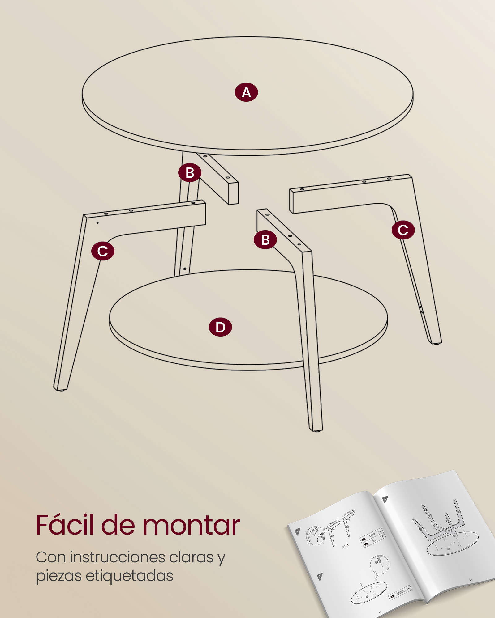 Incluye piezas etiquetadas, instrucciones claras y una estructura sencilla. ¡La tendrás lista en solo 20 minutos!🌿 Estilo Moderno y Natural